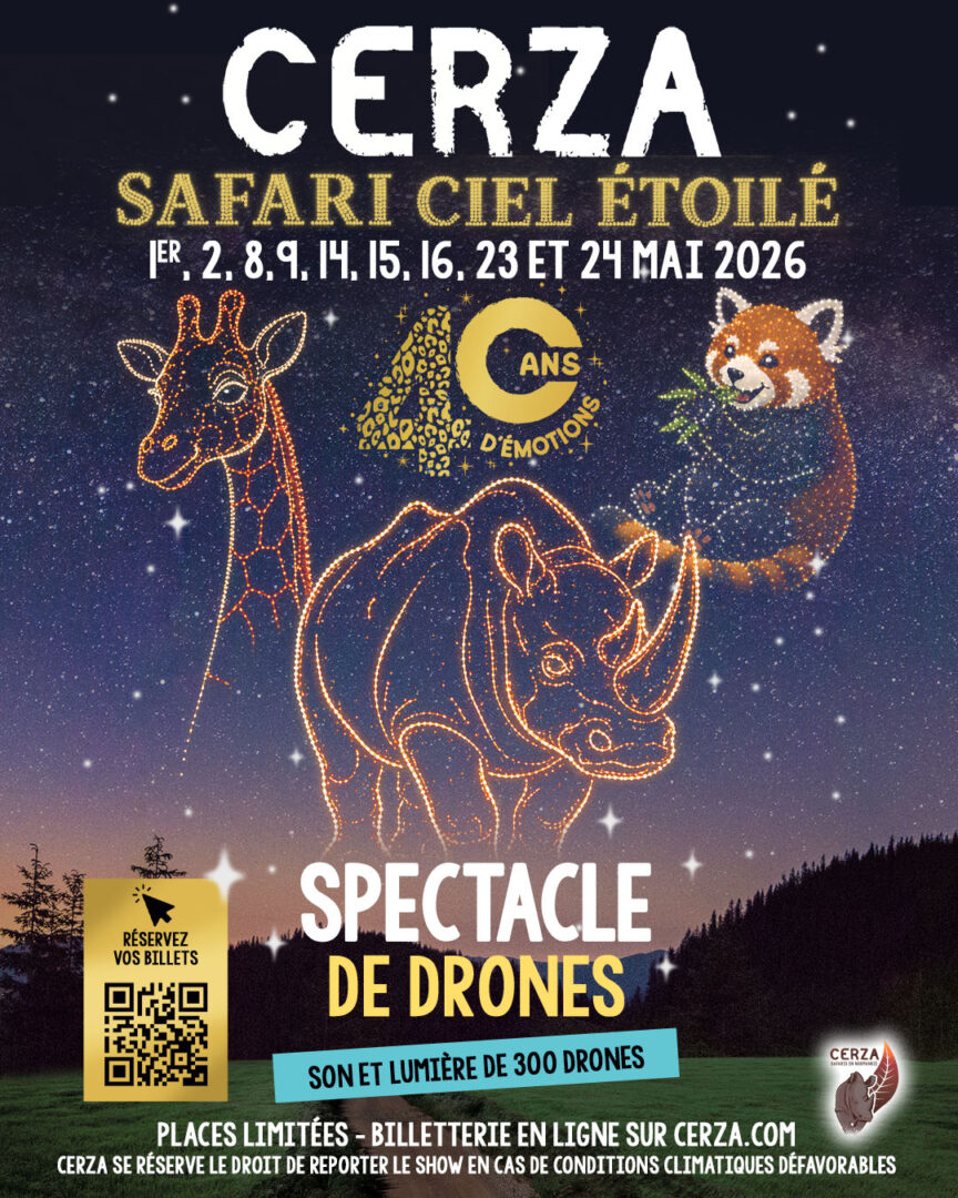 Avec près de 80 hectares, Cerza accueille 1 500 animaux, en semi- liberté, dans les enclos parmi les plus grands d’Europe. Vastes espaces laissés à l’état sauvage, points d’eau naturels et lieux de retrait leur offrent ainsi des milieux de vie adaptés à leur bien-être laissant s’exprimer leurs comportements instinctifs.